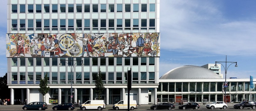 Die Geschichte geht noch viel weiter zurück. Bereits 1908 errichtete der Berliner Lehrerverein an dieser Stelle ein Jugendstilgebäude mit Begegnungsräumen, einer Bibliothek und einem Saal für 1700 Personen. Der Bau wurde leider im Krieg zerstört. Als nach dem Bau der Berliner Mauer der Alexanderplatz zum neuen Zentrum Ostberlins ausgebaut werden sollte, kam die Idee eines Hauses für die Lehrer gerade recht. Stadtarchitekt Henselmann bekam den Planungsauftrag.