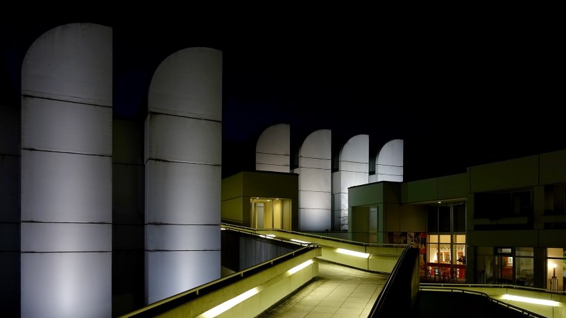 Das war die Chance für Berlin. Mit einem großzügigen Angebot für ein Grundstück, der Realisierung des Neubaus und einem zukünftigen Budget lockte man das Bauhaus-Archiv nach Berlin. Das inzwischen zum international beachteten Forschungsinstitut gewachsene Archiv zog 1971 zunächst provisorisch nach Charlottenburg. Erst 1976 konnte mit dem versprochenen Neubau begonnen werden. Gropius‘ früherer Mitarbeiter Alexander Cvijanovic passte den Darmstädter Gebäudeentwurf von 1964 den Gegebenheiten am Berliner Landwehrkanal an.