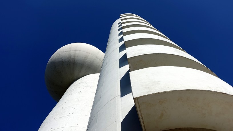 Es ist ein reiner Zweckbau, das Gebäude des Koffler-Beschleunigers des Canada-Centers für Kernphysik auf dem Gelände des Weizmann-Instituts of Science in Rehovot in Israel. Es sind zwei miteinander verbundene Türme. Ein gerader, 57 Meter hoher Turm mit umlaufenden Gängen erinnert an einen Korkenzieher. Der pilzförmige Hauptturm ist nicht ganz gerade und erreicht inklusive dem aufgesetzten „Ei“ 53 Meter Höhe. Der Korkenzieher-Turm enthält das Treppenhaus, die Aufzüge und die Haustechnik und ist mit vier Übergängen mit dem Hauptturm verbunden. In diesem Turm war der Teilchenbeschleuniger untergebracht. Das „Ei“ obendrauf beherbergt auf zwei Etagen das Ionenlabor und einen Besprechungsraum. Auf dem Treppenturm gibt es oben neuerdings noch eine astronomische Beobachtungkuppel. Fertiggestellt wurde der immer noch futuristisch anmutende Bau bereits 1975. Der Beschleuniger ging 1977 in den regulären Betrieb.