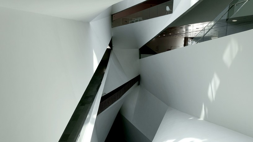 Wenn Sie glauben, dass Sie bereits alle Atrium-Treppenhäuser dieser Welt gesehen haben, dann schnell auf nach Tel Aviv. Hier schafft es der Harvard-Architekt Preston Scott Cohen, regulär kubische Ausstellungshallen in einem dreieckigen Gebäude auf fünf Etagen zu einem spektakulären Bau zu verfalten und dabei auch noch über ein zentrales Atrium mit teils hyperbolischen Flächen Licht bis in die drei unterirdischen Tiefgeschosse zu bringen. In den Museumsräumen konkurriert die Architektur nicht mit der ausgestellten Kunst. Es sind meist weiße, kubische Räume mit guter Belichtung. Aber davor, dazwischen und außen herum wird es spektakulär.